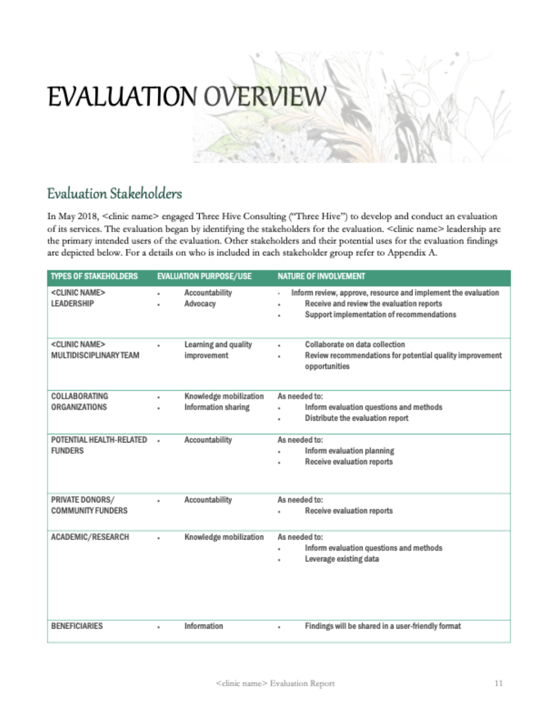 Unfortunately, we can’t share excerpts from the report with you where we helped interpret the findings and recommended next steps, since these are specific to the clinic and its interest holders. However, we hope we have provided you with some inspiration to help inspire your next evaluation report.