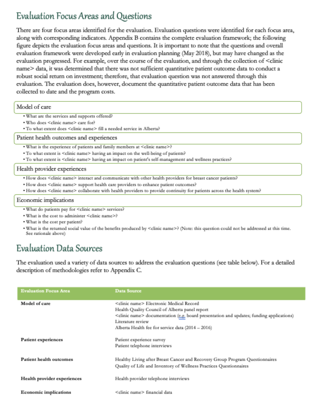 A few years ago, we completed an evaluation for a breast cancer clinic. In honour of Breast Cancer Awareness month, we thought we would highlight some excerpts from that report to help inspire your next evaluation report!
